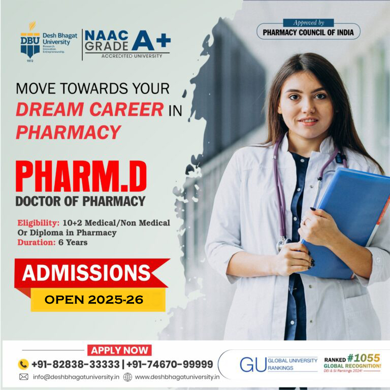 In the top and best pharmacy college in Punjab, Desh Bhagat College of Pharmacy offers B. Pharma and D. Pharma (Ayurveda) courses fully accredited by Pharmacy Council of India